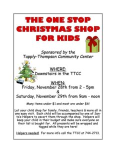 The One-Stop Christmas Shop is a special event that gives children the opportunity to do all their Christmas shopping for family and friends in one convenient location!