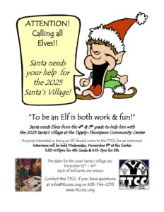Santa needs 4th and 5th grade elves to help with this year’s Santa’s Village!