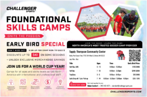 Challenger Sports is teaming up with Tapply-Thompson Community Center to deliver an exciting soccer camp this summer! Players will develop skills, confidence, and a love for the game in a fun, supportive environment.